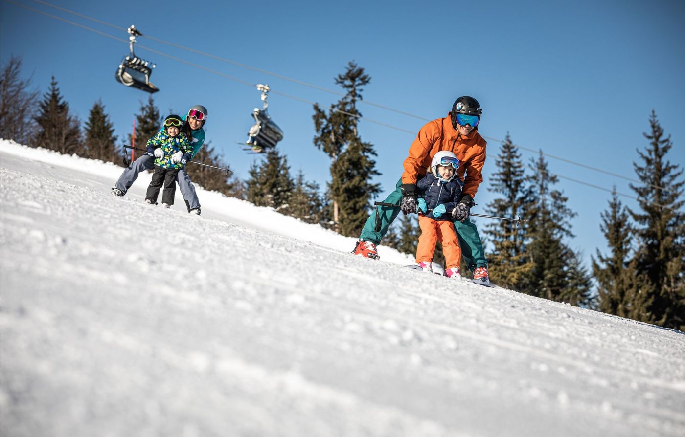 The ski school quality is rated 4.64/5, suggesting professional and friendly instruction for children learning to ski. The efficient lift system and quiet slopes (rated 4.29/5) also contribute to making this a stress-free destination for families.